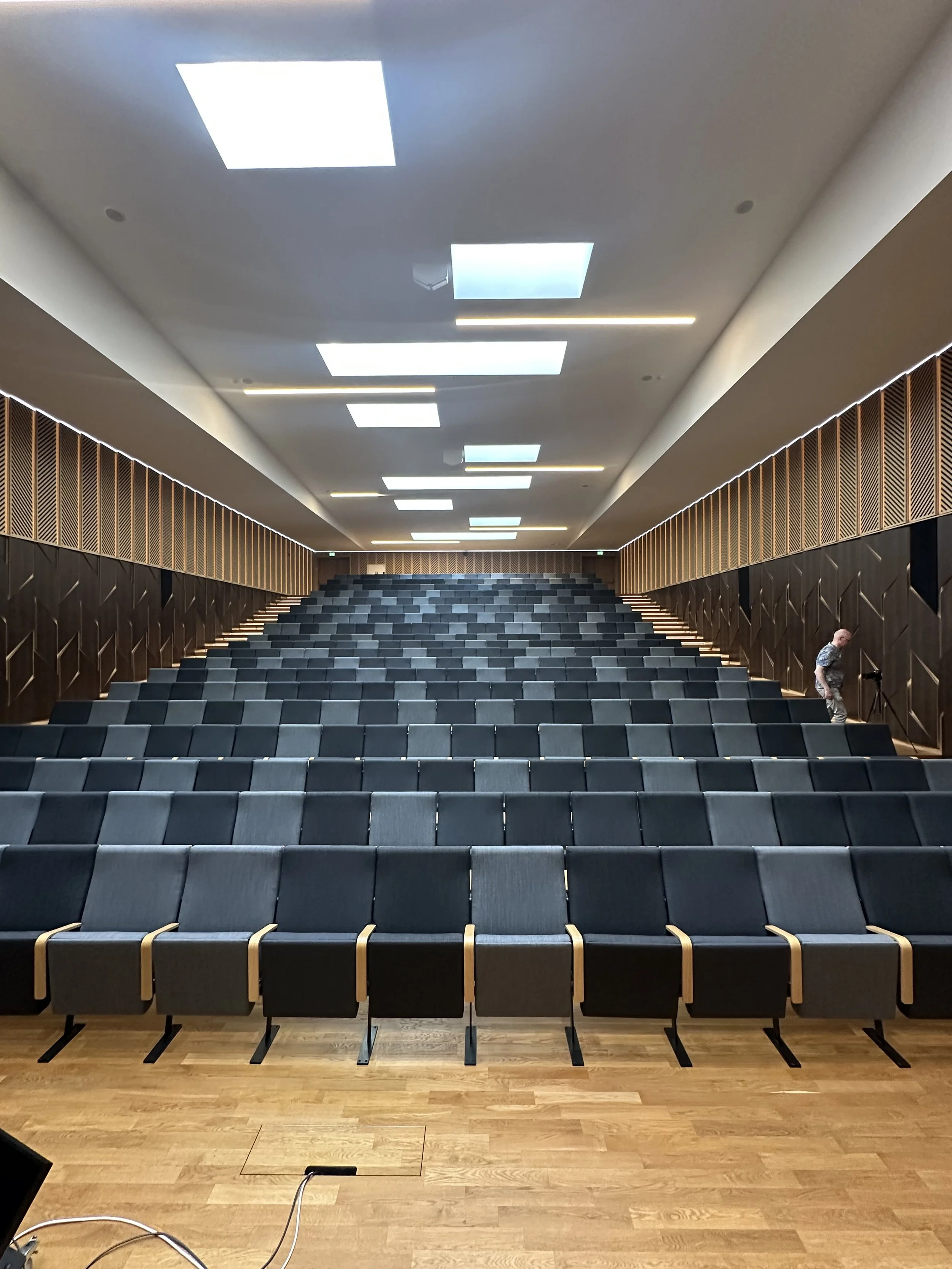 When an international company needed a small auditorium that would stand the test of time—both in quality and design—I set out to create an interior that feels solid, welcoming, and refined.